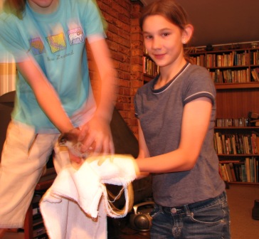 and Lizzie handling a very young chick