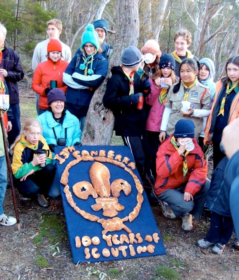 Both Sam and Abi have thoroughly enjoyed both the weekly meetings and the camps they have attended. Cathy amd Mike are also roped on a fairly regular basis, either because of the useful vans or because we are the now the Troop's quatermaster/mistress (sounds scary...). This year was the 100th anniversary of Scouts, and rather than attend the Governor-General's dawn ceremony, we fixed up for the troop to climb Black Mountain tower for dawn instead. The night before, a major baking went on, as everyone got involved in making a huge loaf of bread to eat with soup after the ceremony Cathy did the baking, late into the night. It was a good thing, as the wind was howling, and quickly froze everyone. It was personal and special as everyone had been involved in somethintg that they had invented and done themselves. Unfortunately, Mike missed out, as he had to disappear overnight on a work job.