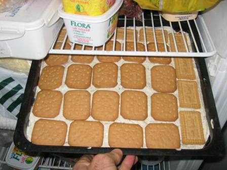 tin. Cover the mixture with another layer of malted milk biscuits on